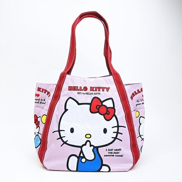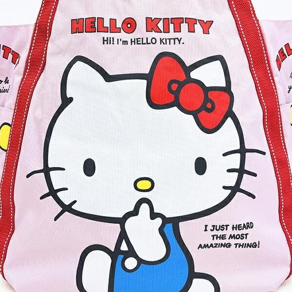 お座り姿に指をくわえた愛らしいキティの姿に私は心を奪われてしまいました、、、!トートバッグと通常のトートバッグと比べ丸みのある形なのもさりげなくかわいいポイントです。大きくしっかりとしたバッグなので、通勤・通学やマザーズバッグ、小さいお子様のおもちゃをしまうのにもピッタリではないでしょうか?