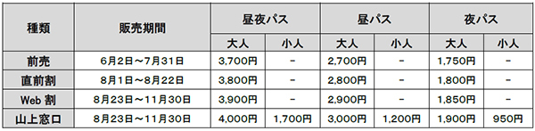 ※夜パス販売開始ならびに入場開始時間は16:00です。