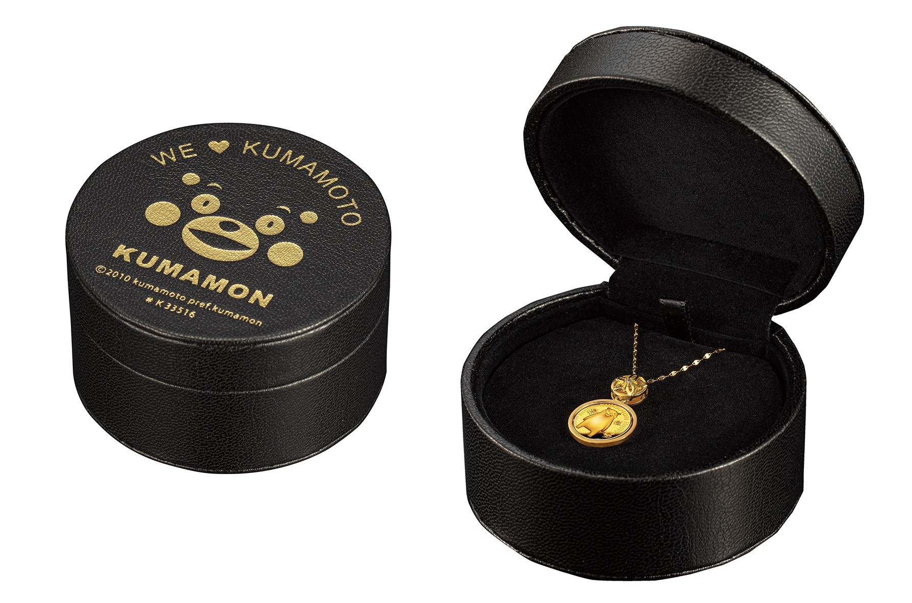 熊本県PRキャラクターとして、人々の元気をサポートする「くまモン」の姿を、最高品位.9999の純金に刻んだ価値ある逸品「くまモンデザイン 宝飾純金製コインペンダント」。
