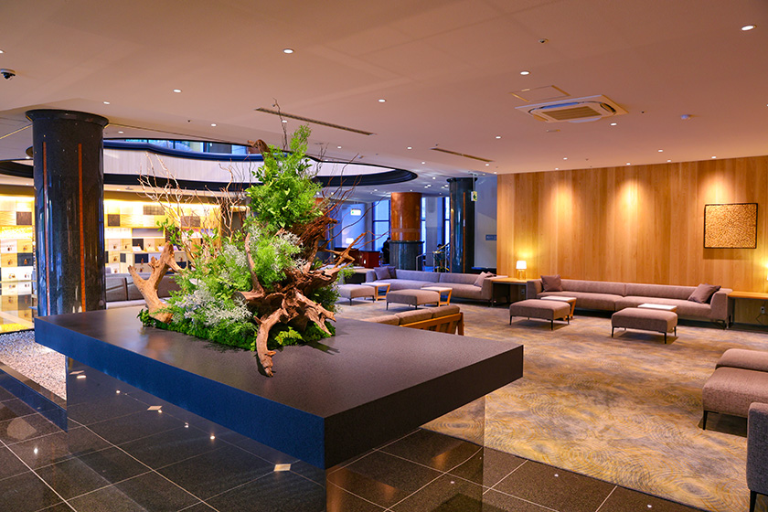 吹き抜けの天井が開放感たっぷりのロビー周辺も装い新たに。
