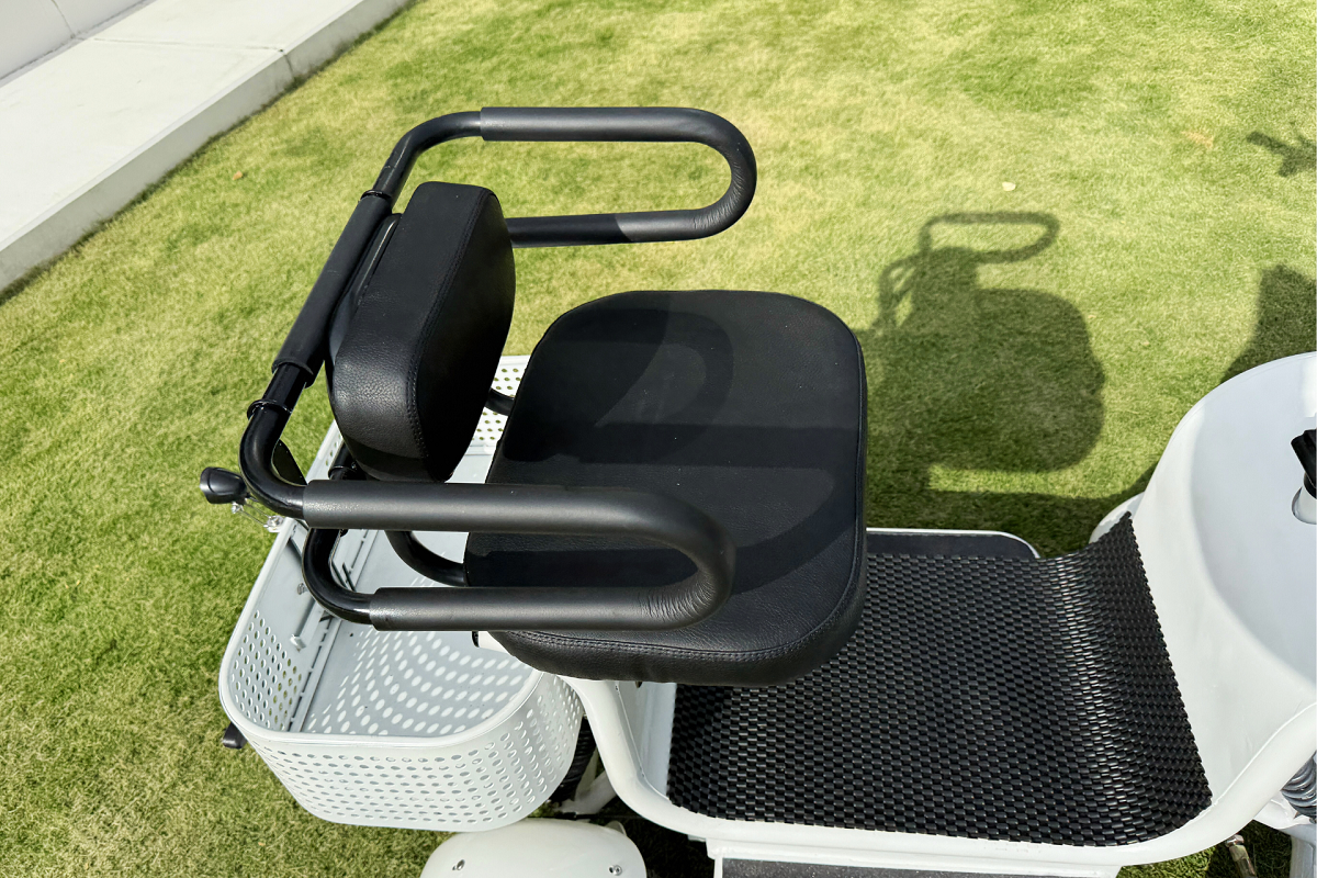 加えてエレポーターでは新しいシート形状を採用。広い座面と背もたれ・腰部サポートにより、体をしっかり支えながら快適かつ安全な走行を可能にしています。