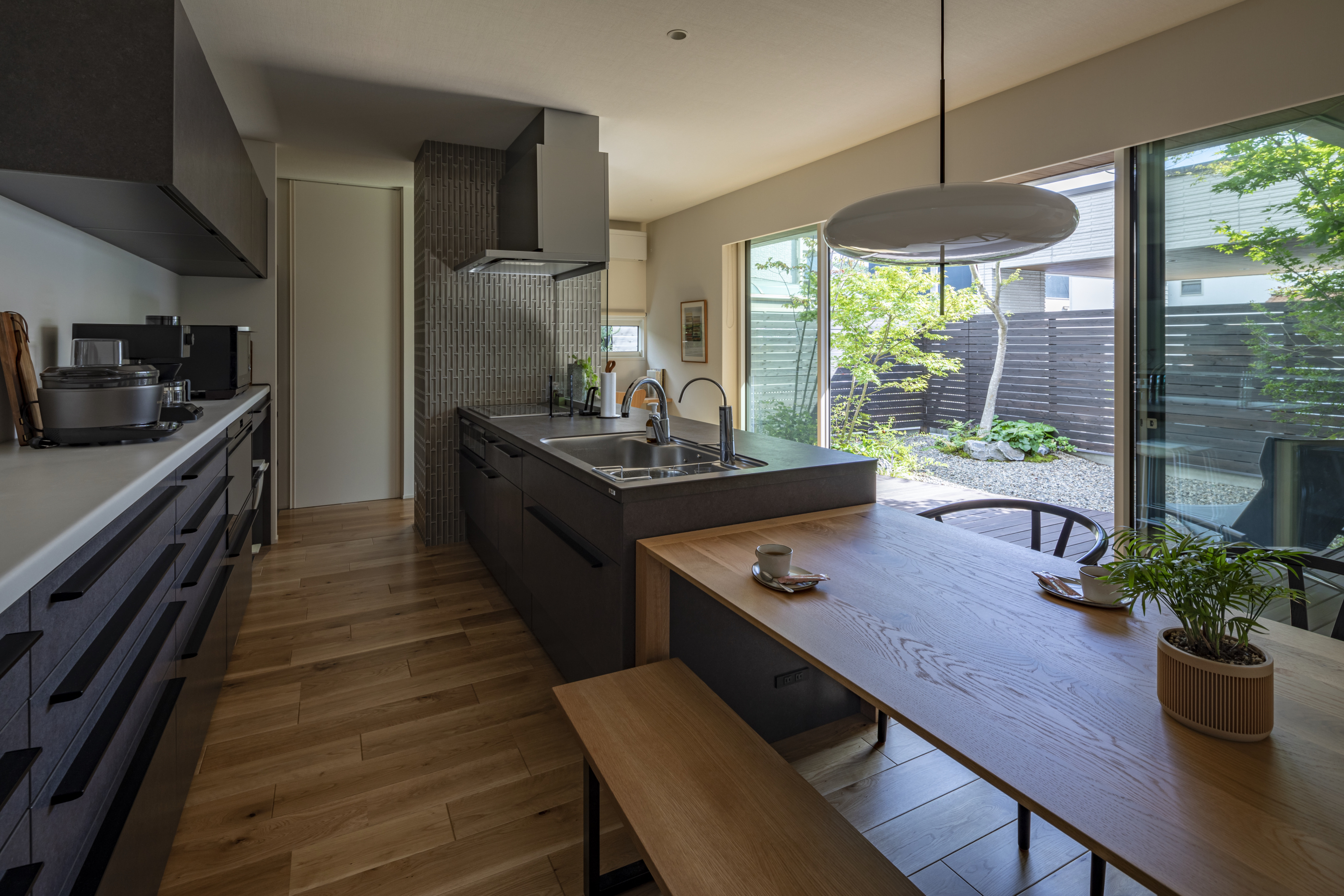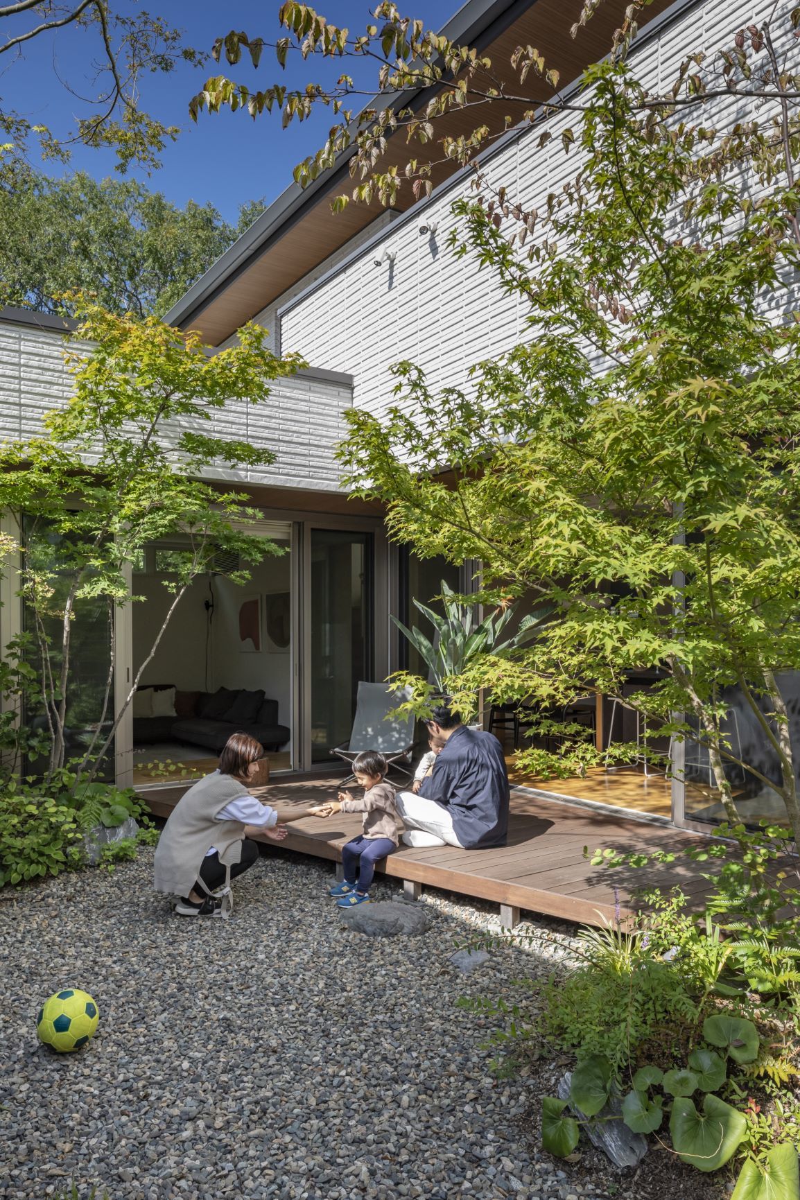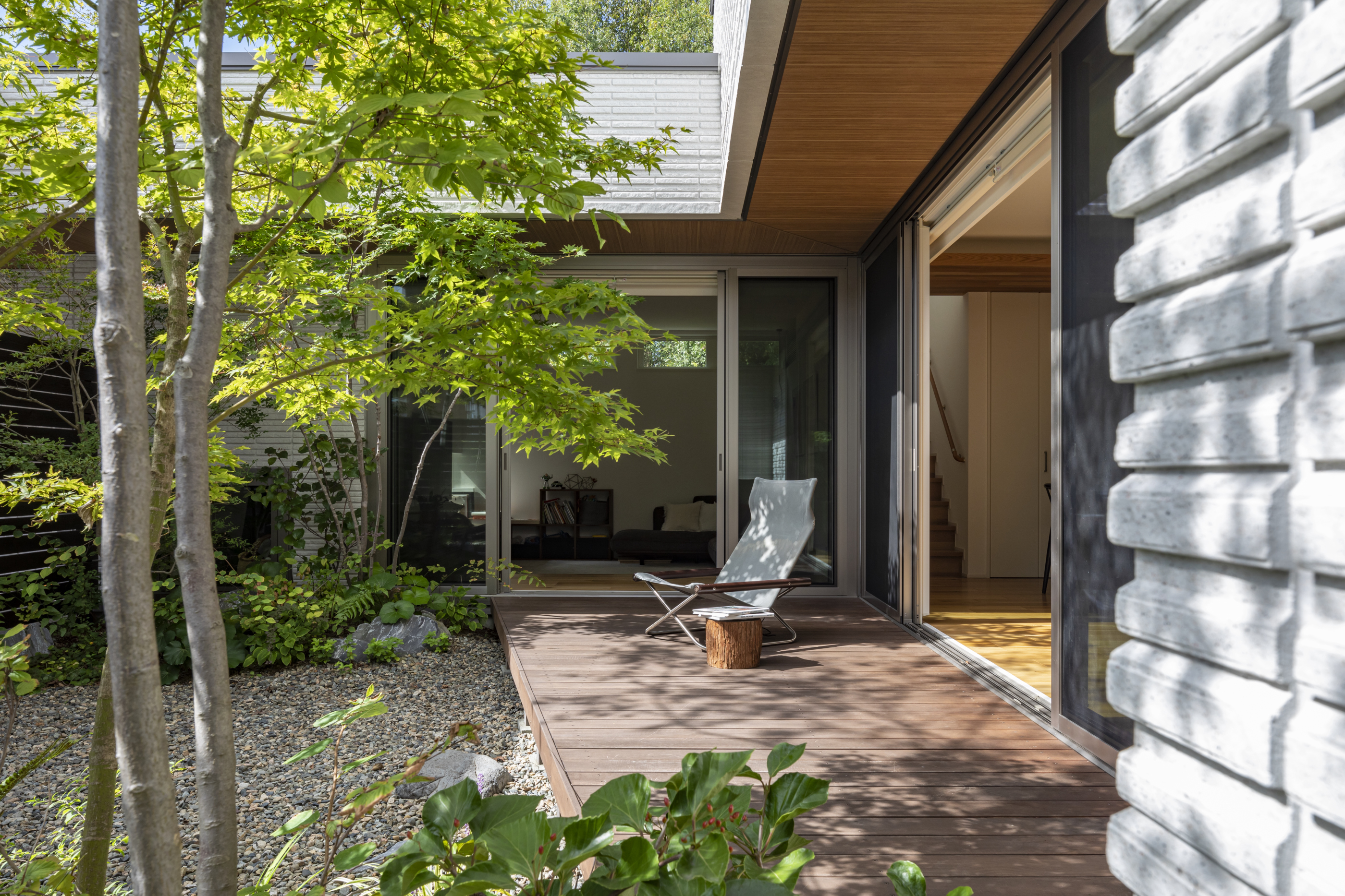 中庭を囲む平屋のような暮らしで、家のどこにいても自然と一体に