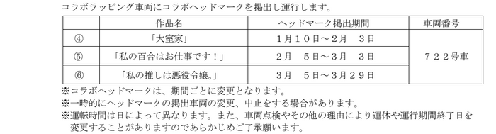 3.ラッピング電車、コラボヘッドマーク≪第2弾≫掲出車両の運行