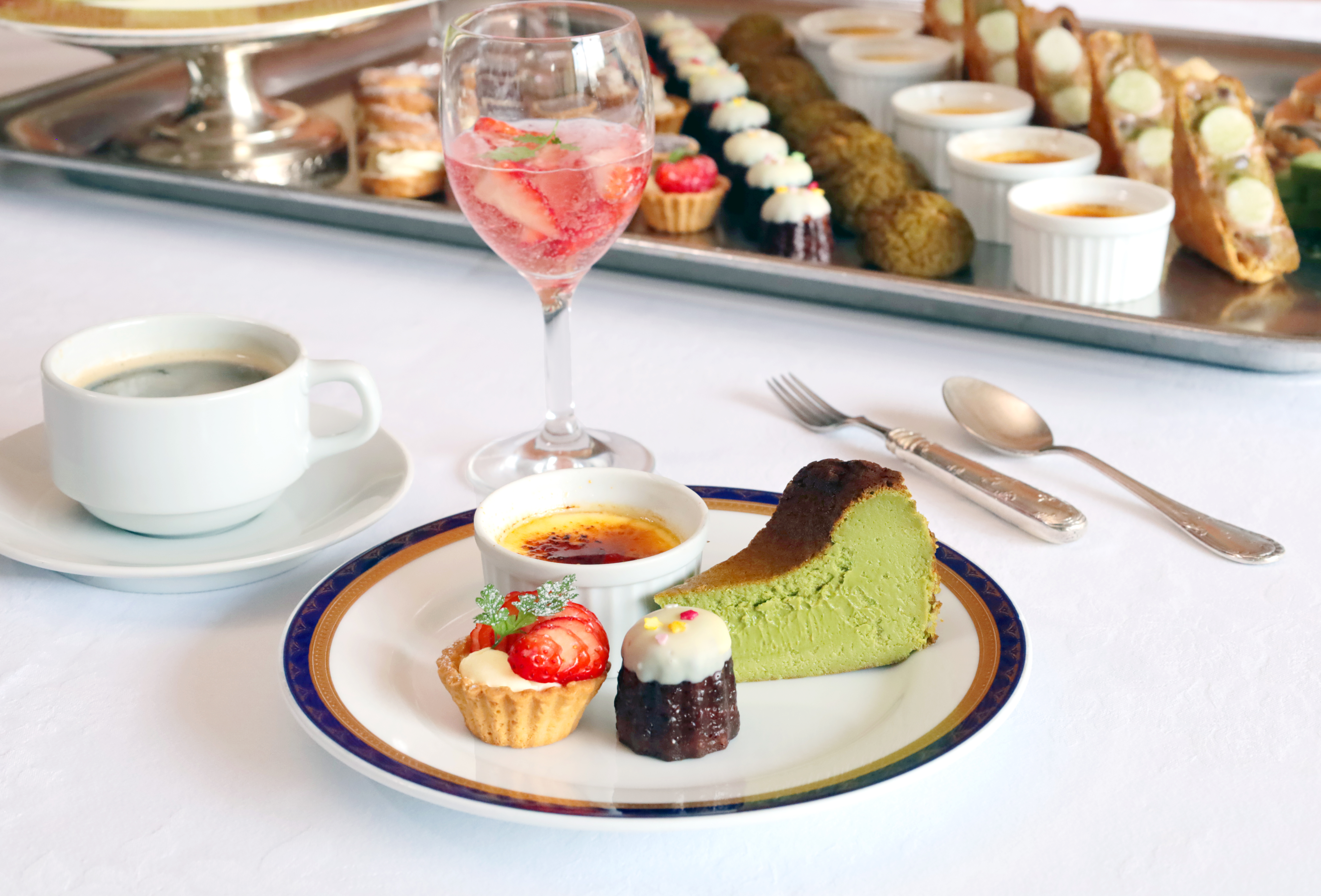 宝石箱のように華やかなワゴンデザートからお好みのスイーツをセレクト。コーヒーや紅茶とともに、夜のひとときやディナー後にふさわしい上質なデザートタイムをお楽しみください。