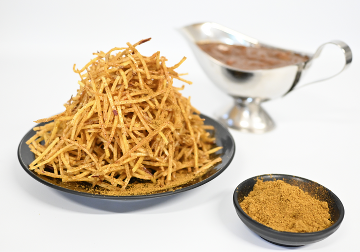 芋とわコーナーの名物商品「黄金極細けんぴ」にスパイシーなカレー味が新登場!細くカットされた芋けんぴにオリジナルスパイスを振りかけてお召し上がりください!