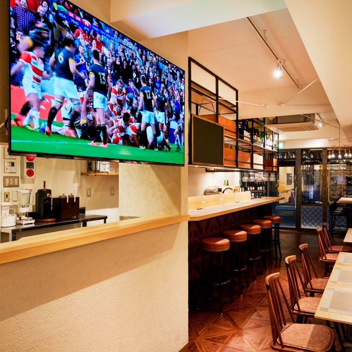 酒造メーカー(酒蔵)とのコラボレーションによる遠隔地開催の「酒蔵見学ツアー」や「蔵開きイベント」の中継及び同業者(日本酒専門飲食店)との協業による他店舗開催の日本酒イベントのネットワーク連携などをコーディネートし、それら日本酒エンターテイメントの体験共有化を実現する店舗内にてのパブリックビューイング会の開催。