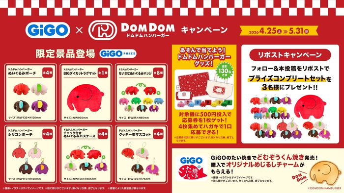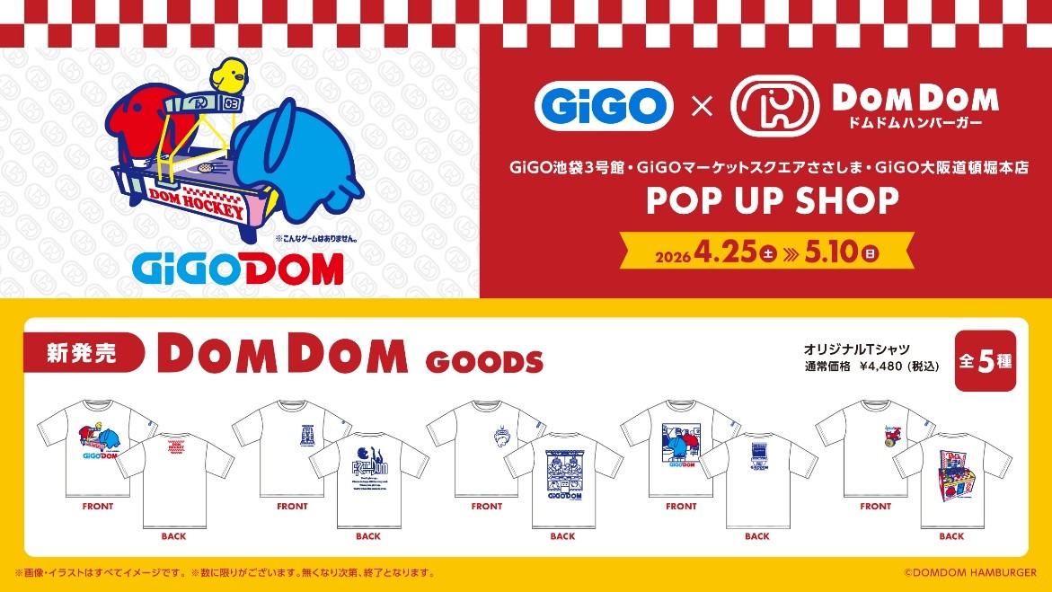 株式会社GENDA GiGO Entertainment(本社:東京都港区 代表取締役社長:二宮 一浩、以下「当社」)は、GiGOグループのお店において、2026年4月25日(土)より、株式会社ドムドムフードサービス(本社:東京都台東区 代表取締役社長:藤﨑 忍)が運営する日本初のハンバーガーチェーン『ドムドムハンバーガー』とコラボレーションした、「GiGO×ドムドムハンバーガーキャンペーン」を開催いたします
