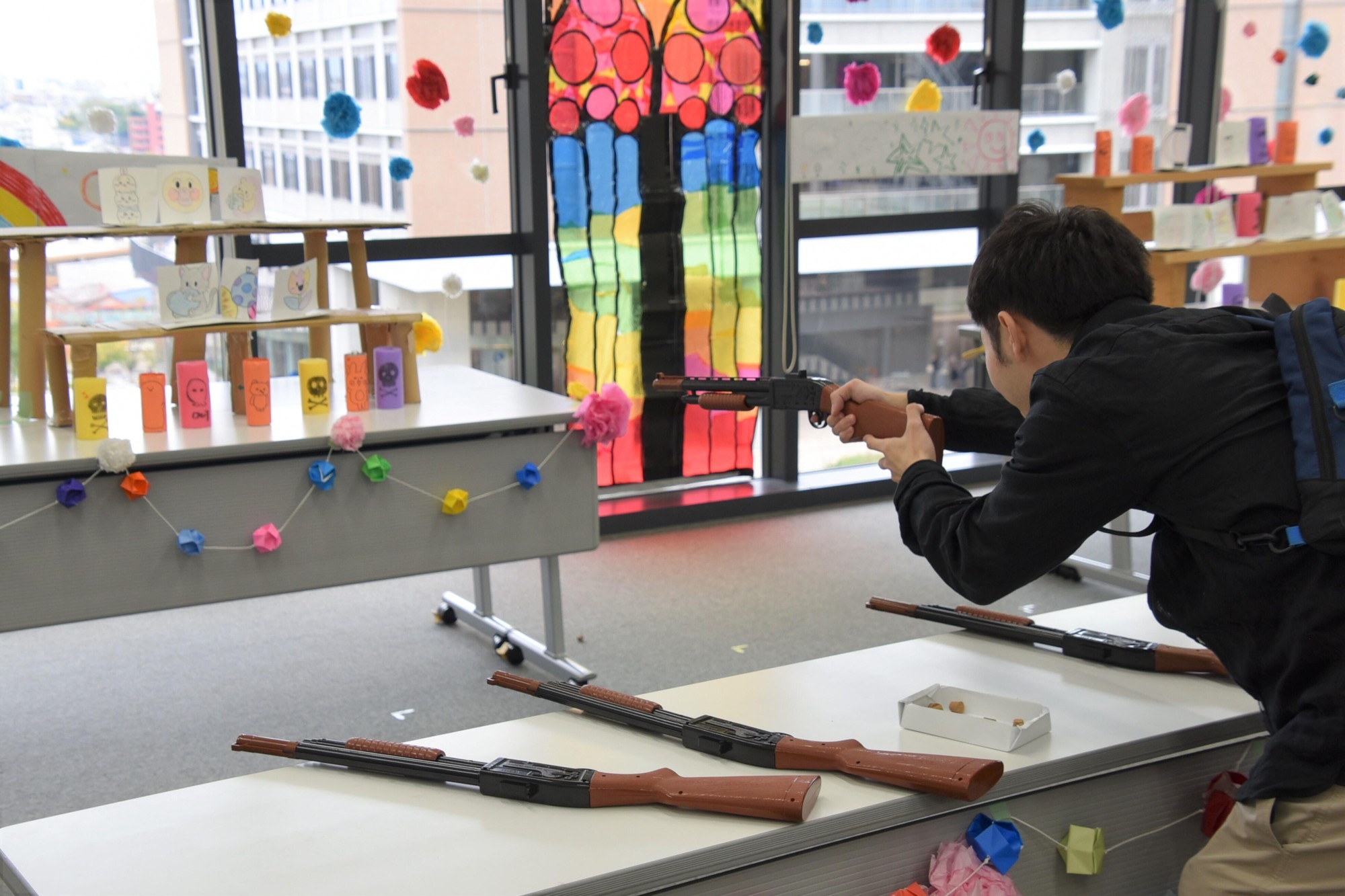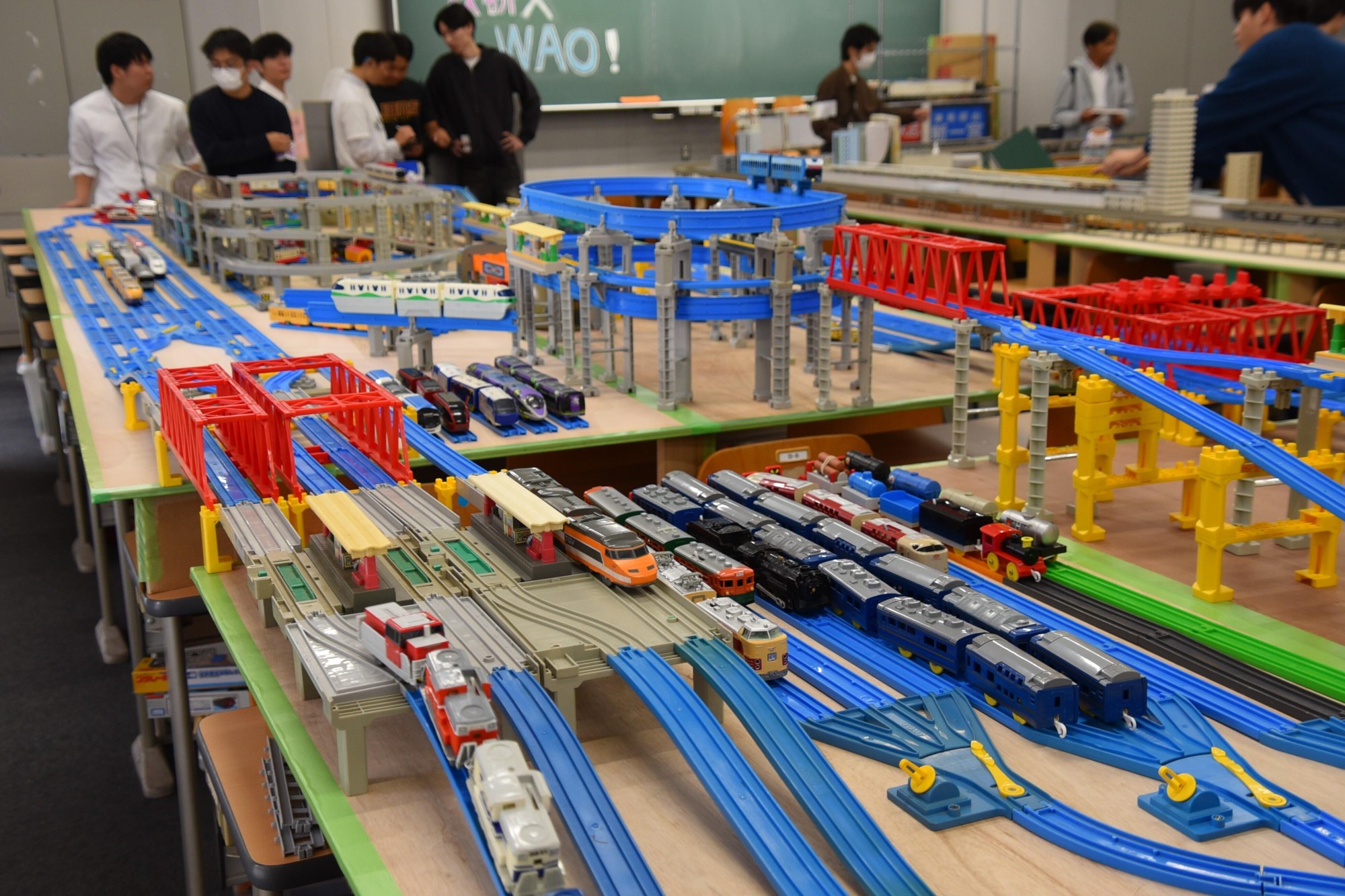 屋内企画では、鉄道研究会による多彩な鉄道ジオラマなどが注目を集め、来場者は模擬店で買い求めた揚げたい焼きやチュロス、綿菓子などをほおばりながら思い思いにキャンパス内を回り、熱気あふれる学生たちのパフォーマンスに盛んな拍手や声援を送っていました。
