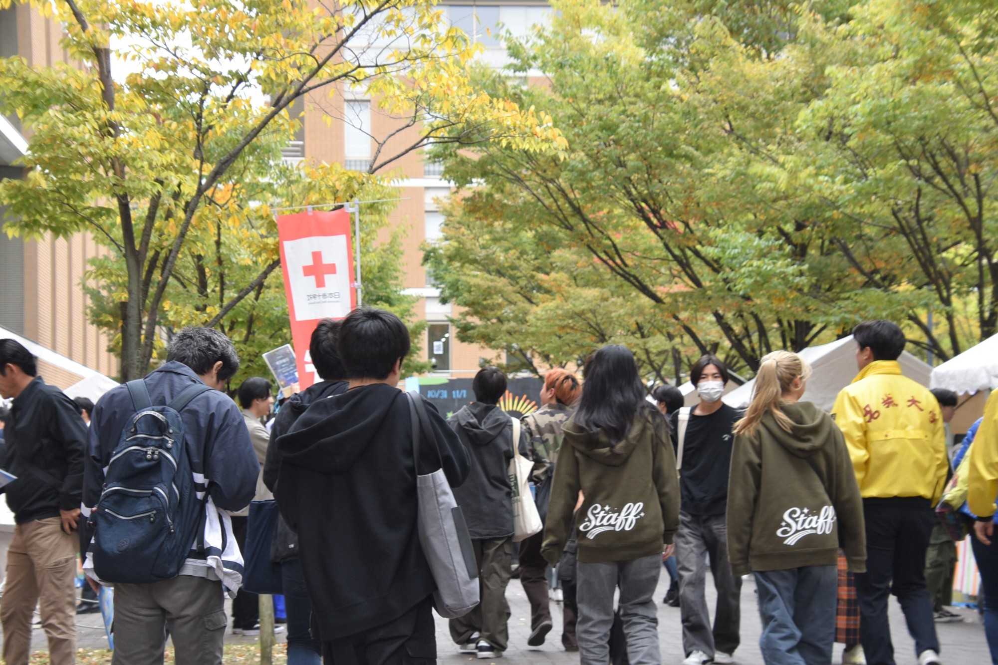 今年は八事キャンパスが改修工事のため、天白キャンパスでの合同開催となりました。学部生は共通講義棟東と同館下のステージを中心に出店して企画などを披露し、学生会による縁日や漢方医学研究部の漢方手湯体験などがにぎわっていました。