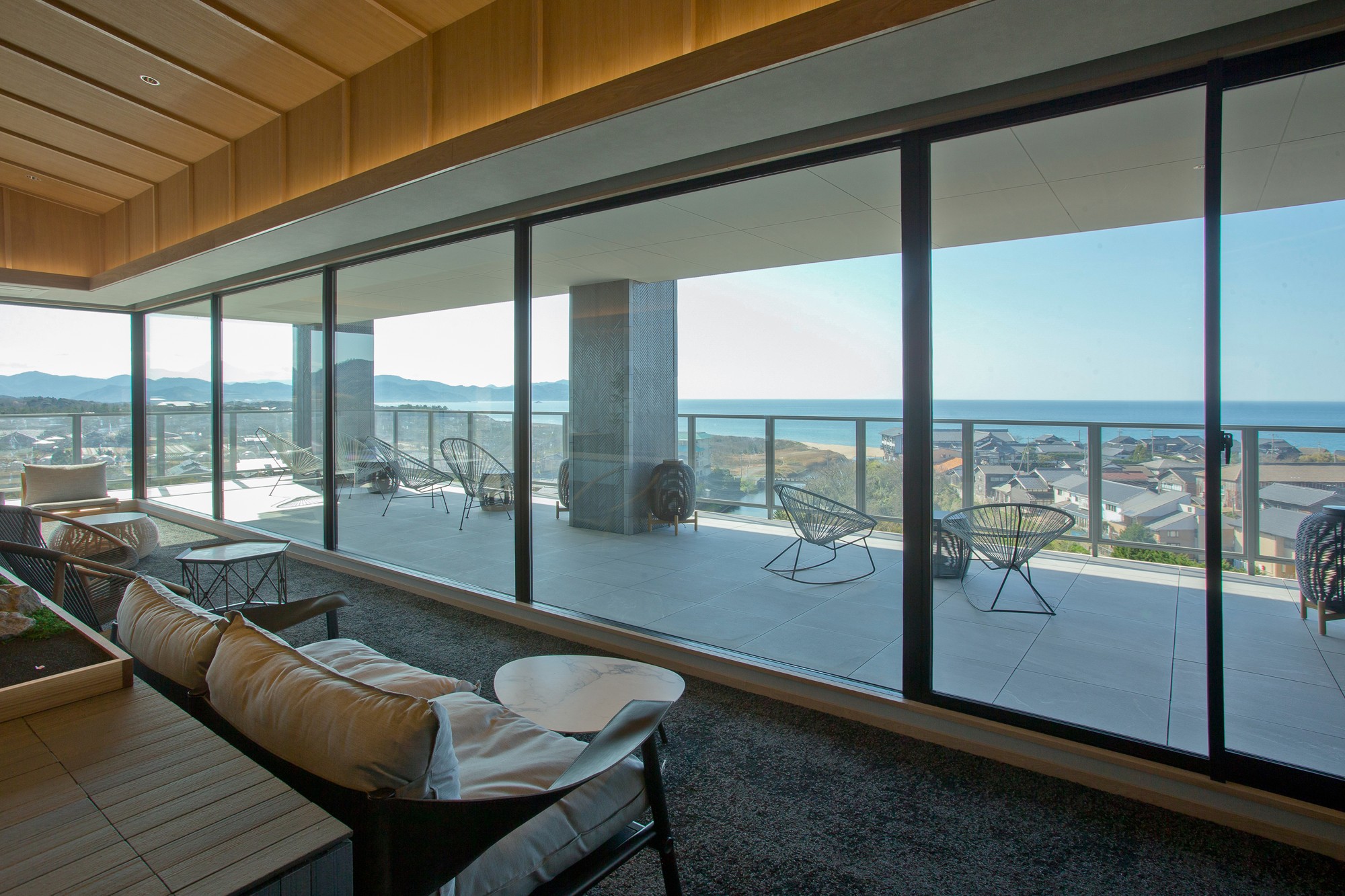 最上階に位置するゲスト専用ラウンジでは、やわらかな光に中、グラスを傾けるひとときをお愉しみいただけます。目の前に広がる水平線の移ろいとともに、春の午後をゆるやかにお過ごしください。フィンガードルチェやラウンジのお飲み物は、チャージフリーにてご用意しております。