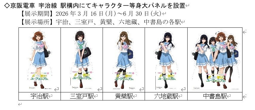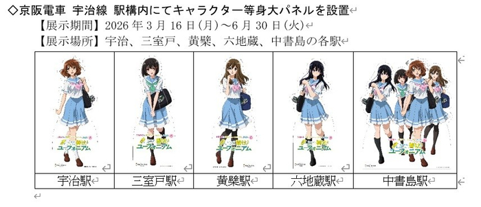 ~宇治が舞台のアニメ「響け!ユーフォニアム」とのコラボレーション企画~ 「京阪電車×響け!ユーフォニアム2026 春」の開催決定!