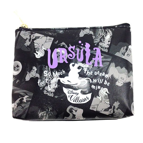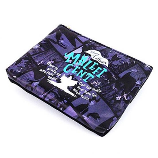 まずはマレフィセントのスクエアポーチです。100×140×80㎜の使いやすいサイズで、マチもあるので容量も◎。クールな色合いですが、中央に描かれたマレフィセントとロゴもオシャレです。