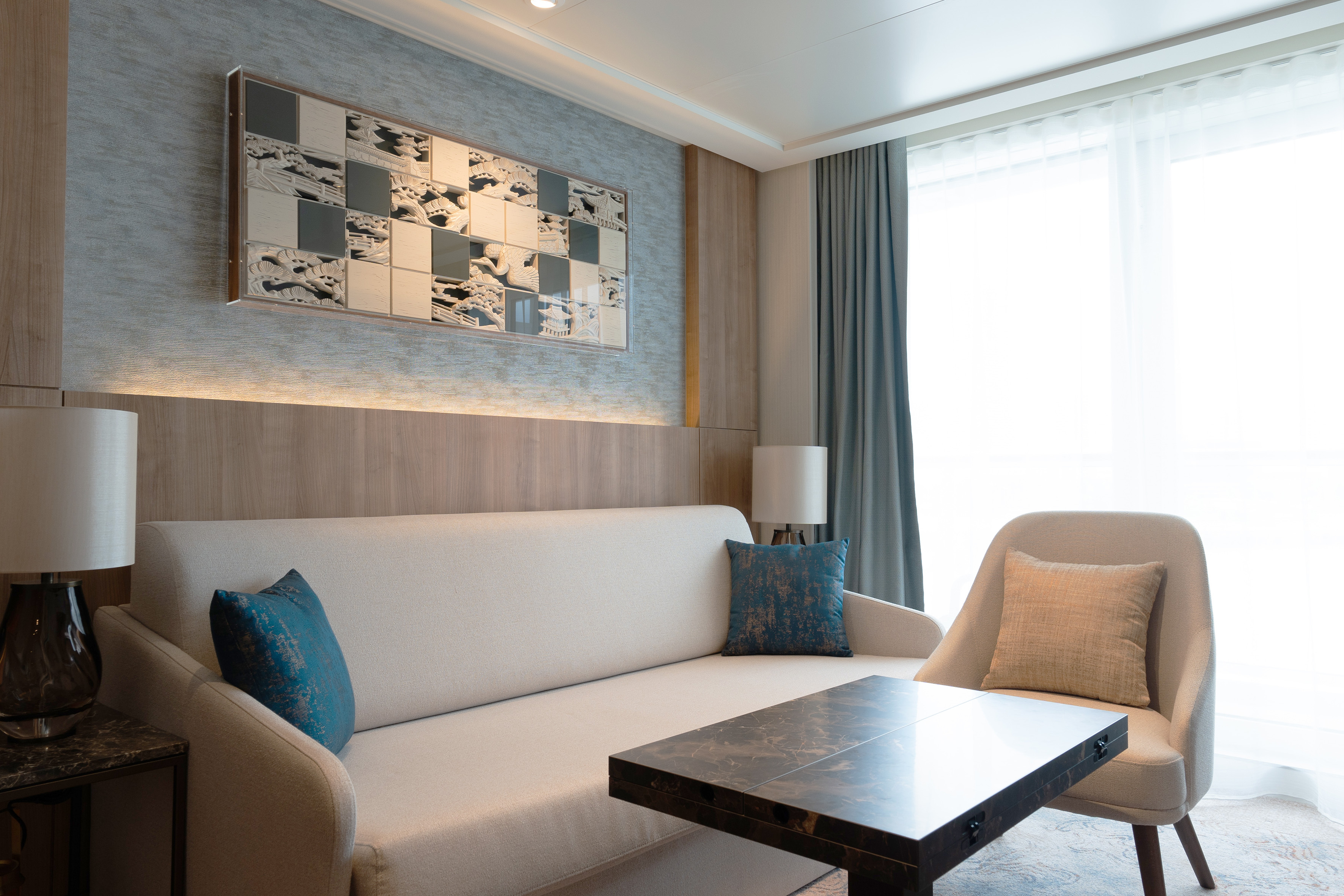 展示場所 : ・飛鳥III「ミッドシップスイート」客室(2025年7月20日就航)