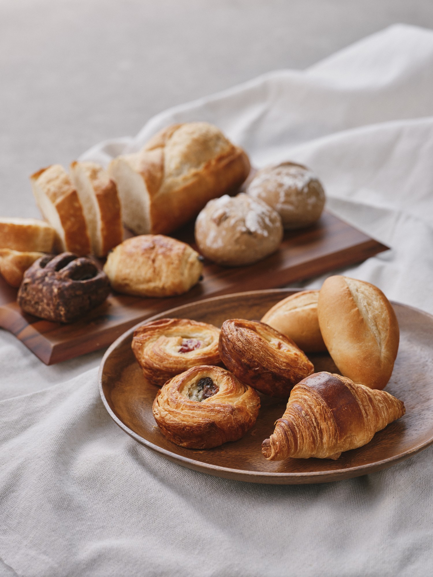NukumOriは、当社が長年培ってきた常温日配の供給力を強みに、ホテル朝食の現場課題とゲスト体験を起点に再設計したベーカリーブランドです。冷凍に頼らず、毎日焼いたパンを毎日届けることで、風味や食感の劣化を防ぎ、パン本来の味わいを安定して提供します。