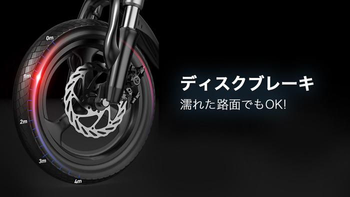 前後輪ディスクブレーキやパンクしにくいタイヤ等、細かいところにも工夫を施しています。