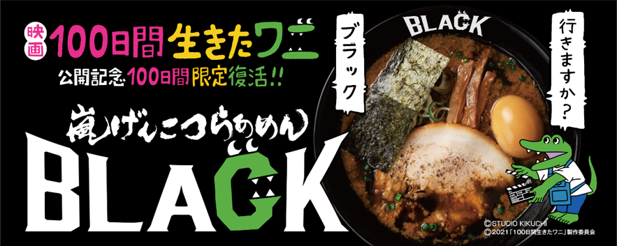 らあめん花月嵐×映画『100日間生きたワニ』 映画公開記念コラボとして復活した『嵐げんこつらあめんBLACK』 大好評&映画公開日変更につき販売期間延長が決定!!