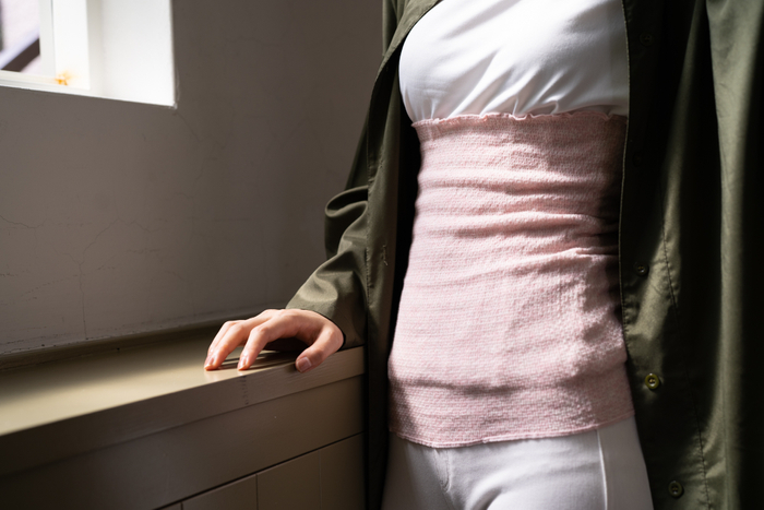 はらまき=冬のアイテム、というイメージがありますが、女性のお客さまの「季節に関係なく、おなかはいつも温めてきたい」という声から、当社は春夏秋冬それぞれの季節に適したはらまきを開発しました。秋用の『あなたになじむ あきのはらまき』は、オーガニックコットン糸を冬用より約25%薄いメッシュ状に編み込み、残暑や朝晩の冷え込みにもちょうどよく仕上げました。