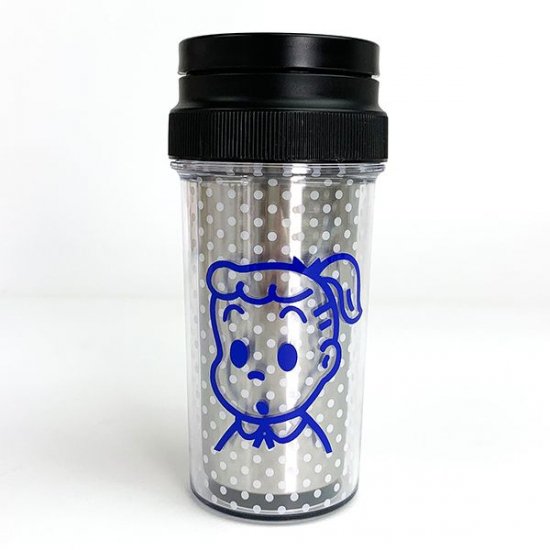 ドット柄がキュートな、オサムグッズのタンブラーです。クリアなボトルの中にステンレス製のタンブラーがセットされていて、ジャックのイラストが入っています。