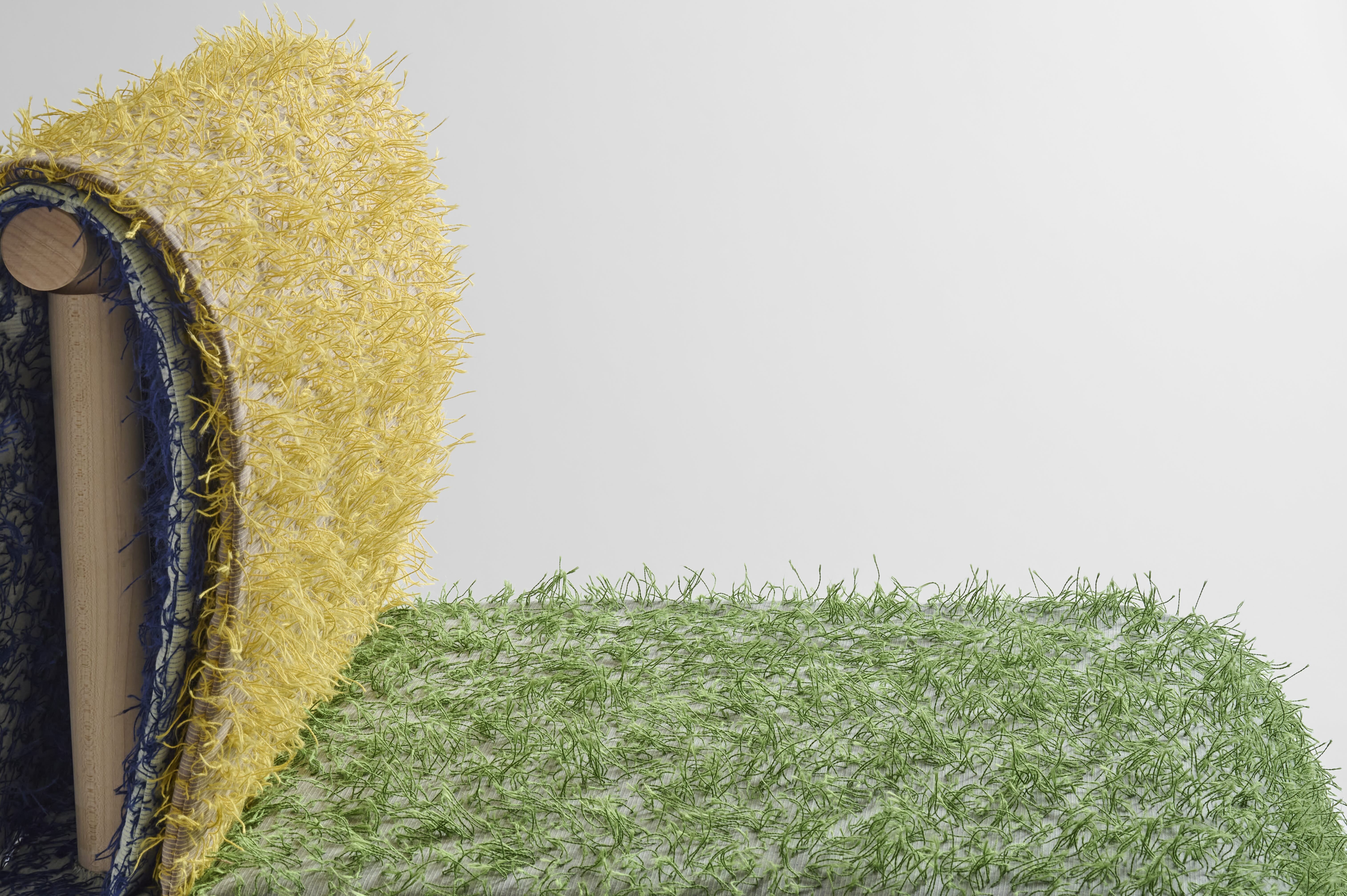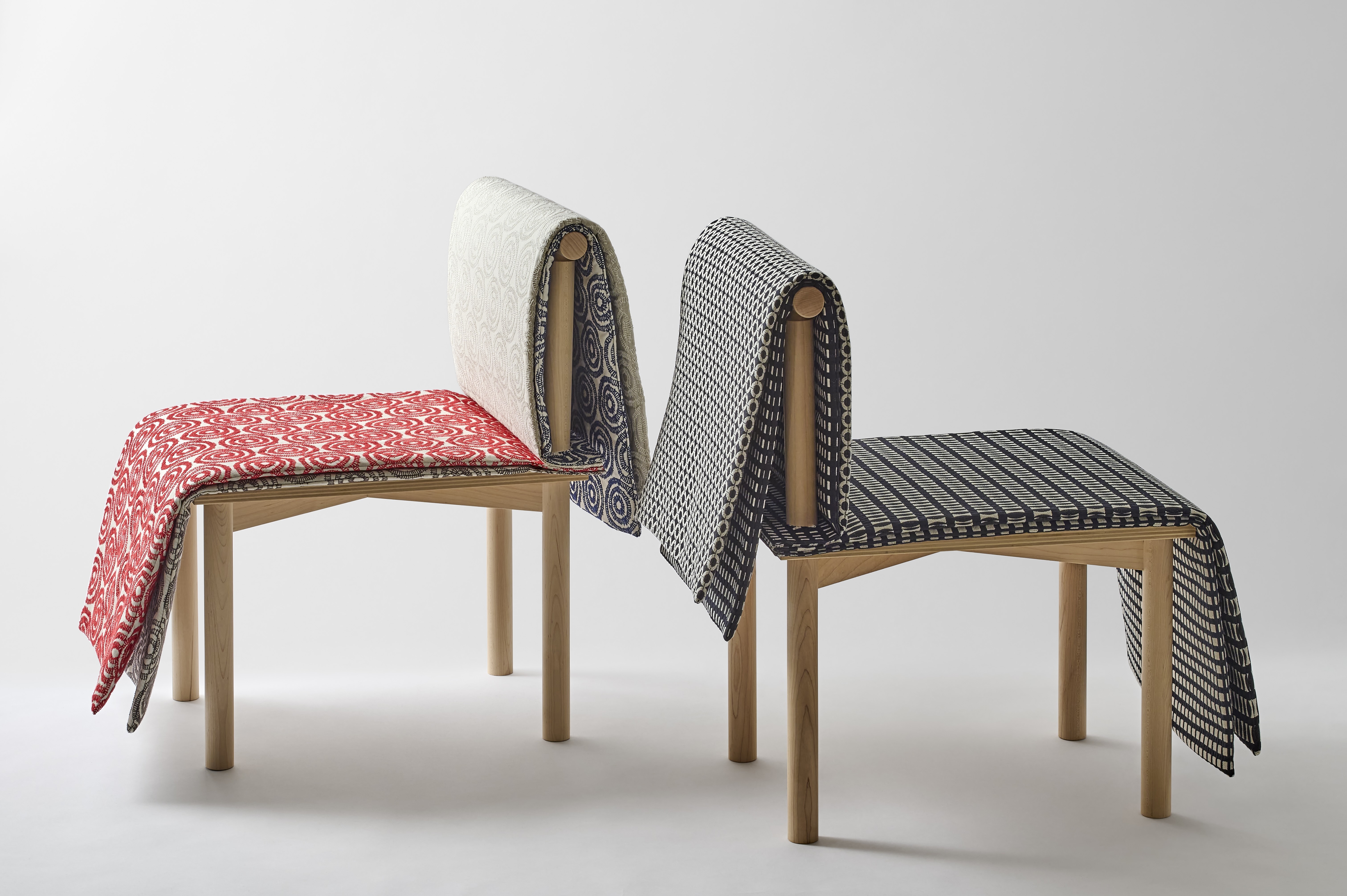 須藤玲子がディレクターを務めるテキスタイルデザインスタジオNUNOは、日本各地の染織産地との強い絆を深めながら、自由な発想で独自の布づくりを続けています。本展ではカラフルにモノクロ、刺繍や糸に特徴のあるものなど、12種類の個性豊かなNUNOのテキスタイルでドレスアップしたPAGES CHAIRが、そのコンセプトをより際立たせ、家具としての魅力を増幅させた姿で登場します。座面シートは日本屈指の椅子張り技術を誇るミネルバにより細部まで美しく仕上げられ、また廃棄までを見据えて中材を外側と同じ素材にするなど、環境負荷低減に取り組む須藤ならではの視点も加わりました。