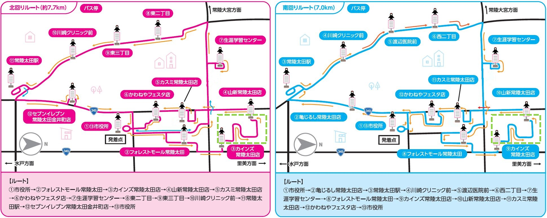走行ルート:常陸太田市役所、常陸太田駅や常陸太田市東部地区を周遊するルートを走行