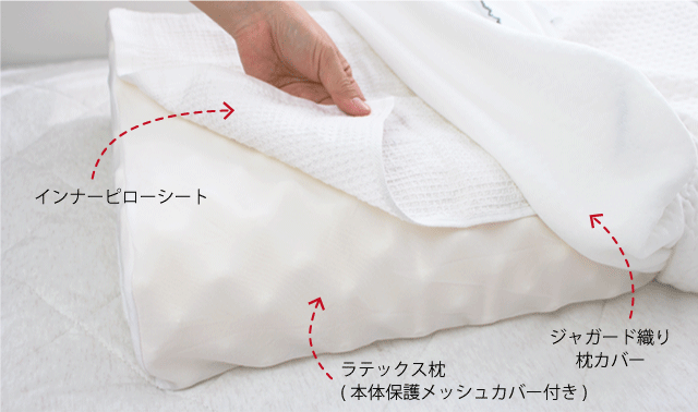 附属の枕カバーの中に直接入れてご使用いただくことで、あなたの大切な枕を清潔に保つ役割を担います。