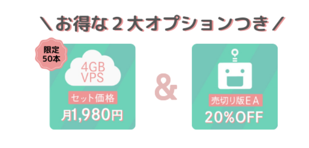 さらに、FX自動売買に欠かせないVPSがお得に購入できる同時購入オプションもあります。初めてFX自動売買を始める方にとって、初期費用を抑えて全自動売買を試せる絶好の機会です!