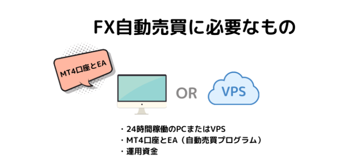 EAは予め決められたプログラムに沿って売買を行うツールです。あなたが仕事をしているときも、寝ているときも、MT4を24時間立ち上げておけば勝手に取引をしてくれます。