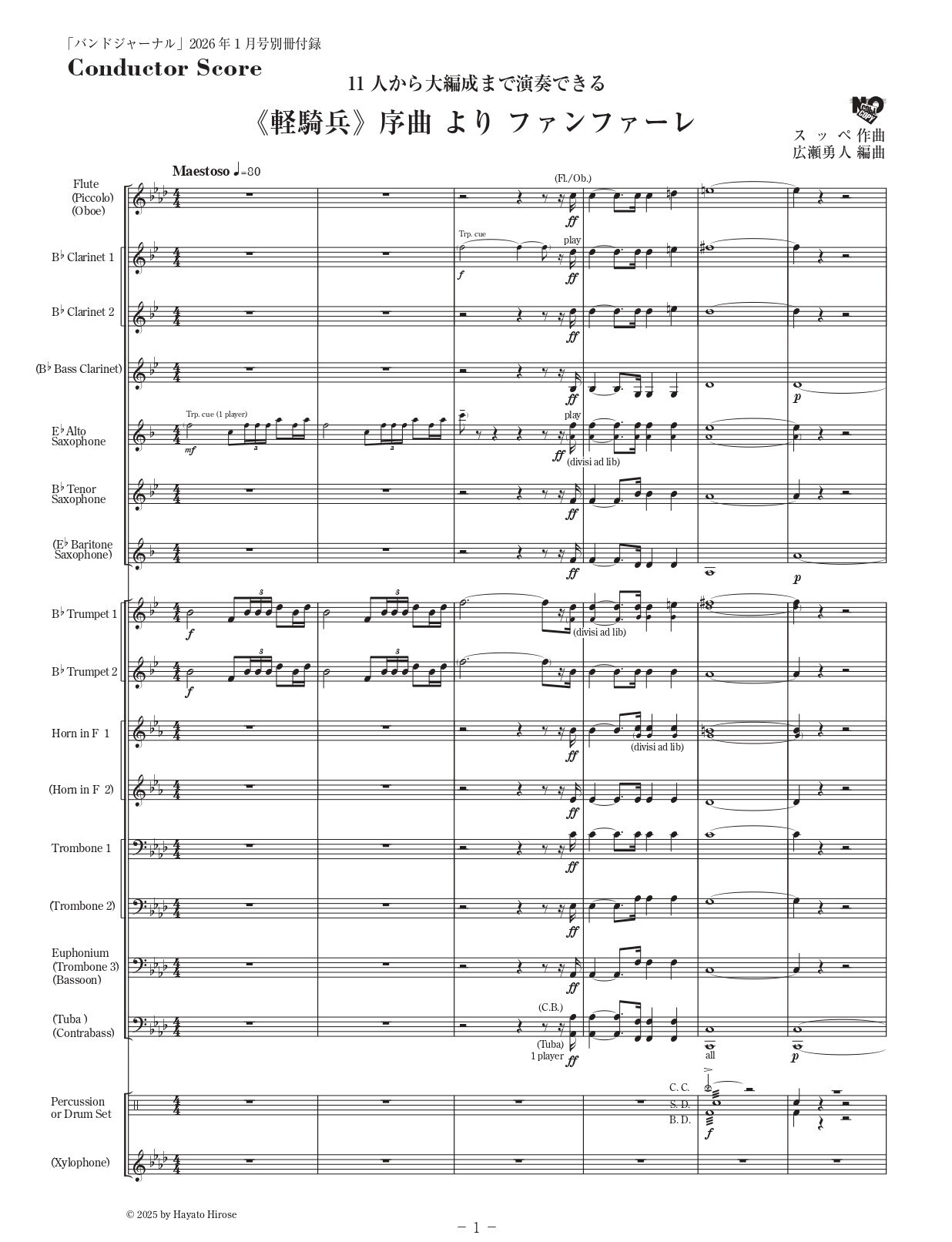 別冊付録楽譜:「《軽騎兵》序曲ファンファーレ」(スッペ 作曲/広瀬勇人 編曲)