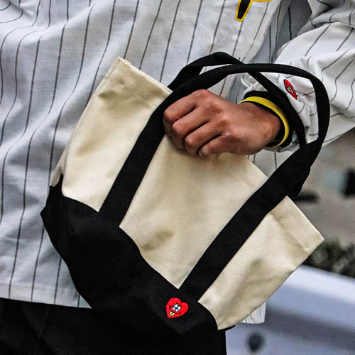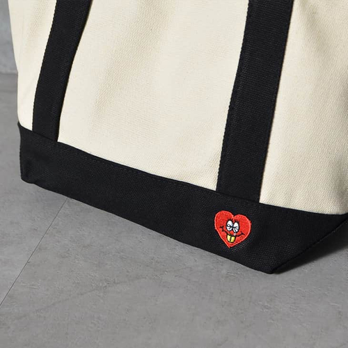 使用しているキャンバス素材は、ナチュラルな印象を与え、ペロリゴンモチーフでハズしを効かせたアイテム。