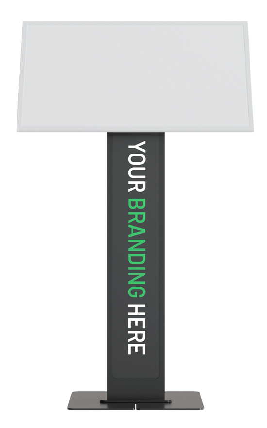スタンド前面には大型のグラフィックパネルを備えており、ロゴやメッセージを大きく掲示できます。受付やイベント会場、販売スペースでのブランド訴求に最適です。