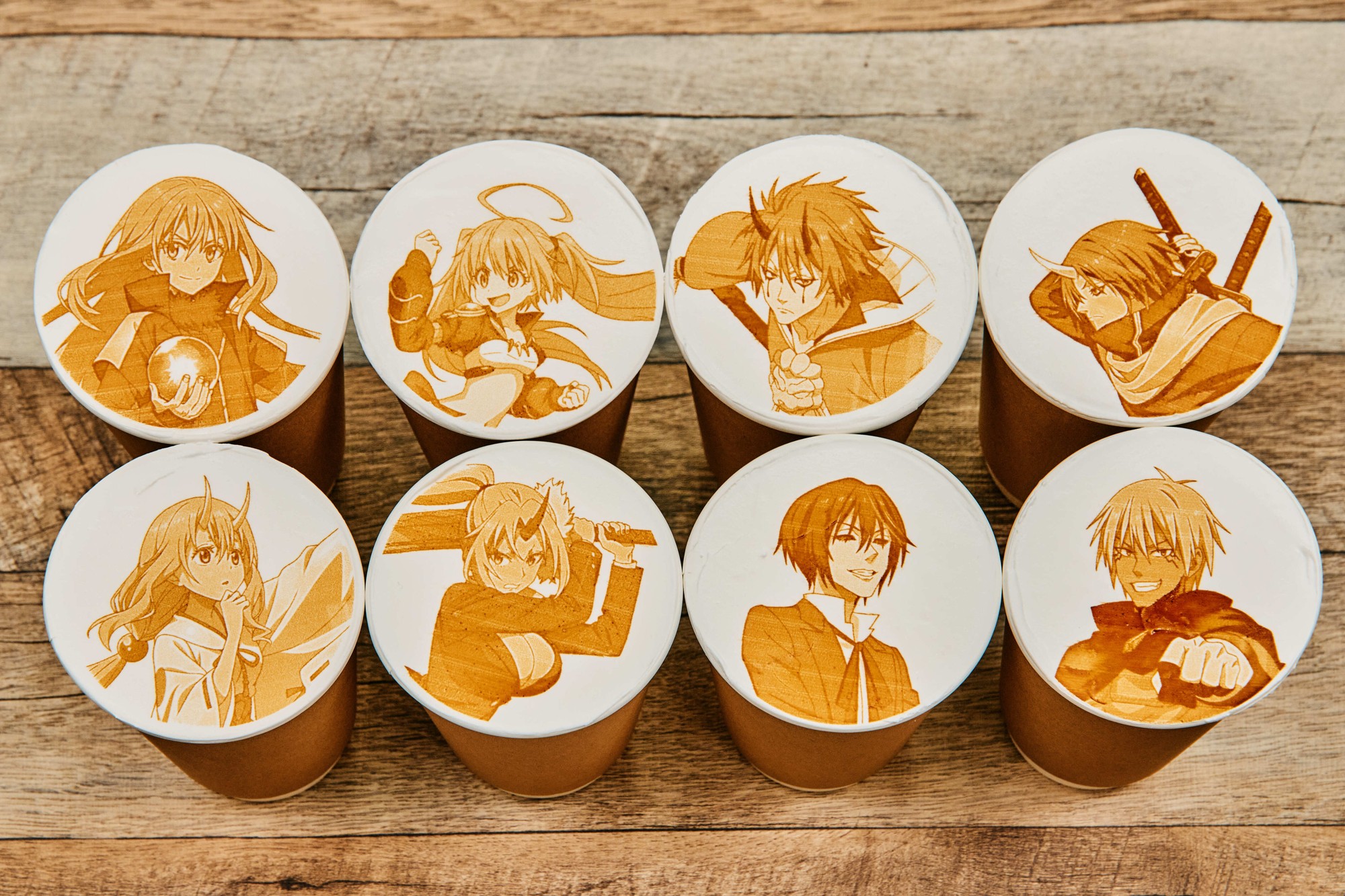 東京ミステリーサーカス1FにあるHIMITSU COFFEEでは、イベント開催に合わせて期間限定でコラボフードを販売します。イチオシは、主人公リムルのスライム形態をイメージした「転生したらフロートになっちゃった件」。ご機嫌な表情を浮かべるリムルをラムネ味のシャーベットで表現した、ファン必見のドリンクです。また、イベントの描き下ろしイラスト(全8種)を使用した、ここでしか味わえない「カフェ・ラテ・アート」もご用意しました。