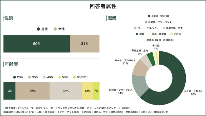 ポータブル電源・アウトドア家電ブランドのPowerArQ(本社:大阪府)は2026年2月、ゴルフ経験者104名を対象に「プレー中・ラウンド中に使いたい家電・ガジェット」に関するアンケートを実施しました。