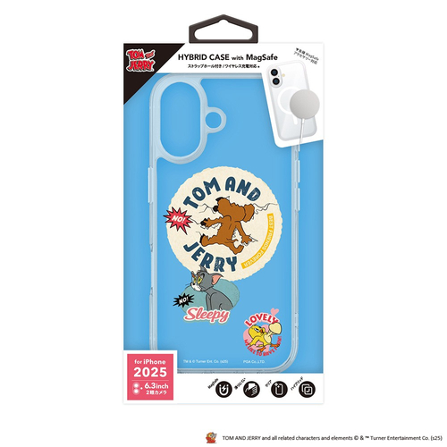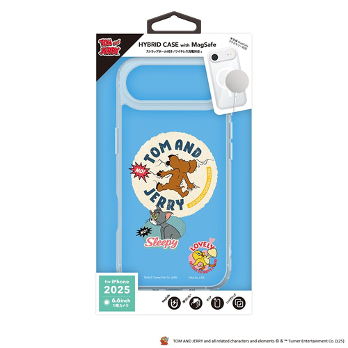 「トムとジェリー」デザインの各種MagSafeアクセサリーに対応したハイブリッドケースです。MagSafeアクセサリーをピタッと簡単装着。背面は衝撃に強いポリカーボネイト・側面は手に馴染みやすいTPUを組み合わせたハイブリッド設計で端末本体をしっかり保護します。お手持ちのストラップを付けて落下を防止できるストラップホール付き。