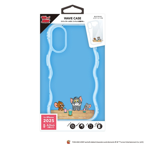 「トムとジェリー」デザインの着せ替えシートがセットになったiPhone用 ウェーブケースです。iPhone本体の色を活かす透明タイプの着せ替えシートは気分に合わせて取り外しが可能です。波打つデザインが可愛らしいウェーブケースは、耐久性のあるポリカーボネイトとしなやかなTPUを組み合わせたハイブリッド設計で端末本体をしっかり保護します。ケースを付けたままワイヤレス充電が可能です。お手持ちのストラップをつけて落下を防げるストラップホール付き。