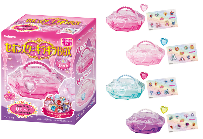 1.カバヤ食品オリジナル、ロングセラーのアクセサリー玩具菓子『セボンスター』の世界観をイメージした心ときめくキラキラ可愛いアクセサリーボックス商品です。