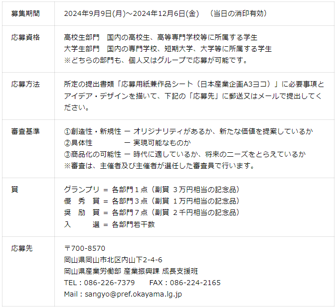 岡山モノづくり★学生アイデア・デザインコンテスト