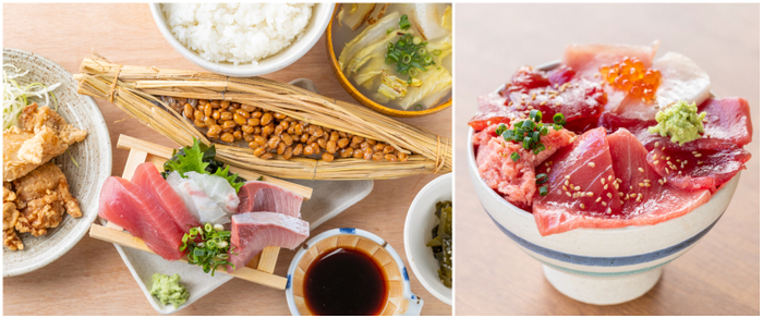 いなほ食堂といえば、こちらの「いなほ食堂定食」は如何でしょうか?お刺身に、つくば鶏のから揚げ、小鉢とお味噌汁、そこに茨城県産の美味しいご飯!そして忘れてはいけない「わら納豆」。もう何から手を付けたらいいのか分からないくらいのワクワク感も一緒にお楽しみください。