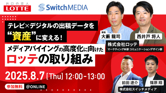 株式会社スイッチメディア(本社:東京都港区、代表取締役社長:高山 俊治)は、当社が提供するテレビとデジタルの統合分析SaaS「クロスメディアインサイト」が、株式会社ロッテ(本社:東京都新宿区、代表取締役社長執行役員:中島 英樹、以下ロッテ)に本格導入されたことをお知らせいたします。