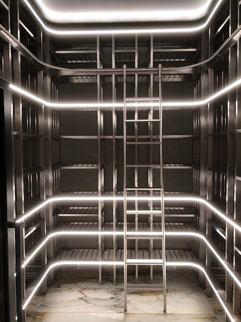 ステンレスの硬質感を否定した滑らかな印象をライン照明と間接照明で演出。