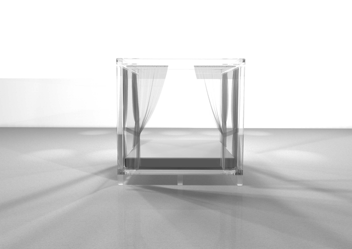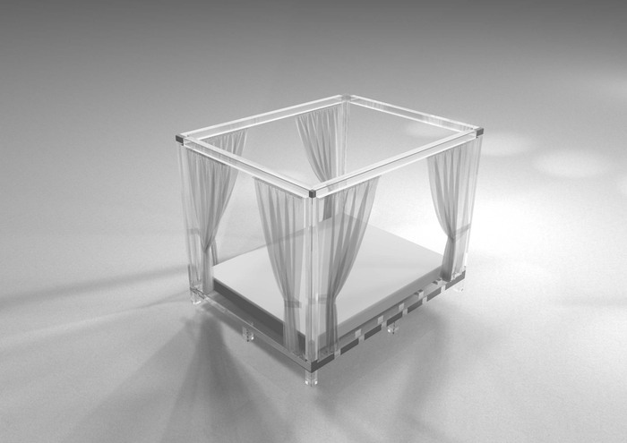 中世ヨーロッパの宮殿の寝室をアクリルでミニマムに表現