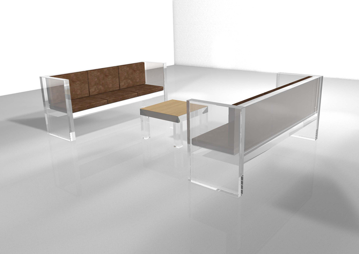 モデュロールな造形と浮遊感のある透明アクリル素材の融合は、幻想的で偉大な存在感を静かに主張する