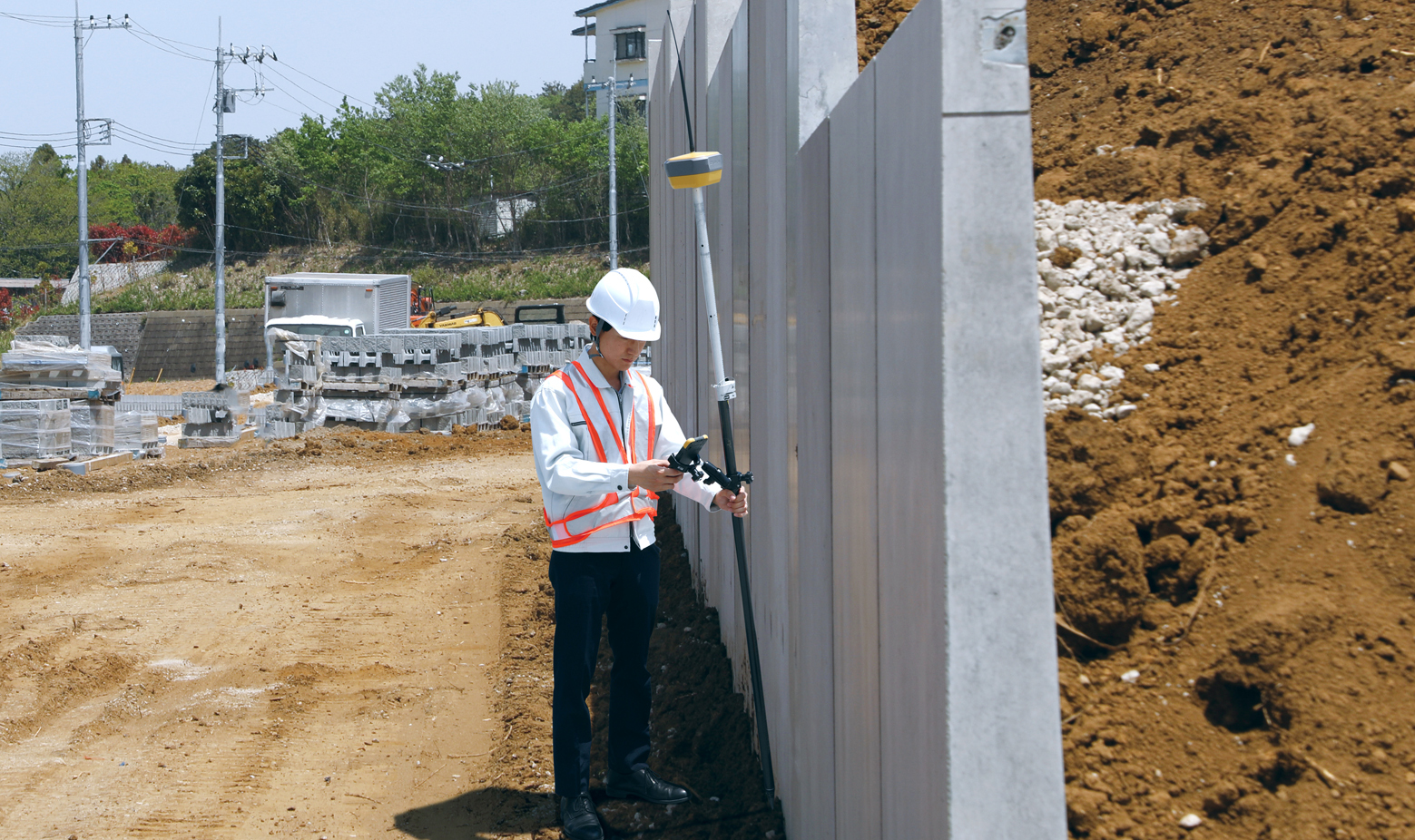 さらに、当社独自のTILT(TM)(Topcon Integrated Leveling Technology)補正機能を強化し、最大60°までの傾斜に対応。従来では観測が困難だった壁際などのポールを垂直に立てられない箇所でもスムーズに測定できます。また、従来機比で約1.5倍に伸長された通信距離と、82チャンネルに増加したデジタル簡易無線の搭載*により、RTK観測の安定性と対応エリアが大幅に向上。これにより、障害物の多い現場や広範囲にわたる測量作業においても、高い作業効率を実現します。