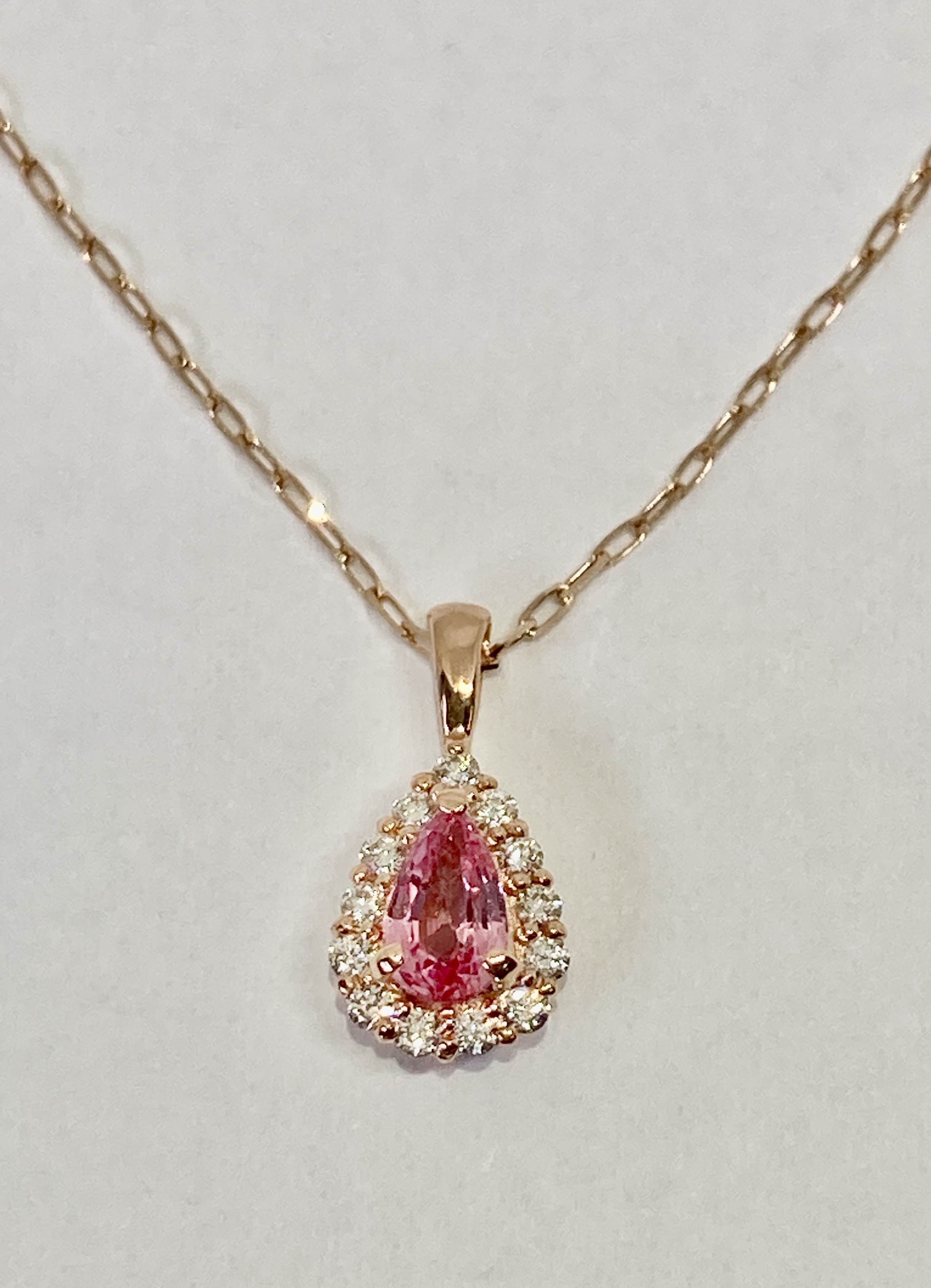 パパラチアサファイアとは、世界三大希少石の一つで、スリランカを象徴する宝石です。世界でもごく限られた大地から生まれる宝石で、ピンクとオレンジが織りなす「蓮の花」の色合いが特徴です。今回、0.256カラットのパパラチアサファイアと0.080カラットのダイヤモンドを18金ピンクゴールドのチェーンにあしらったネックレスを含む、スリランカが誇る多彩な宝石類の販売を行います。