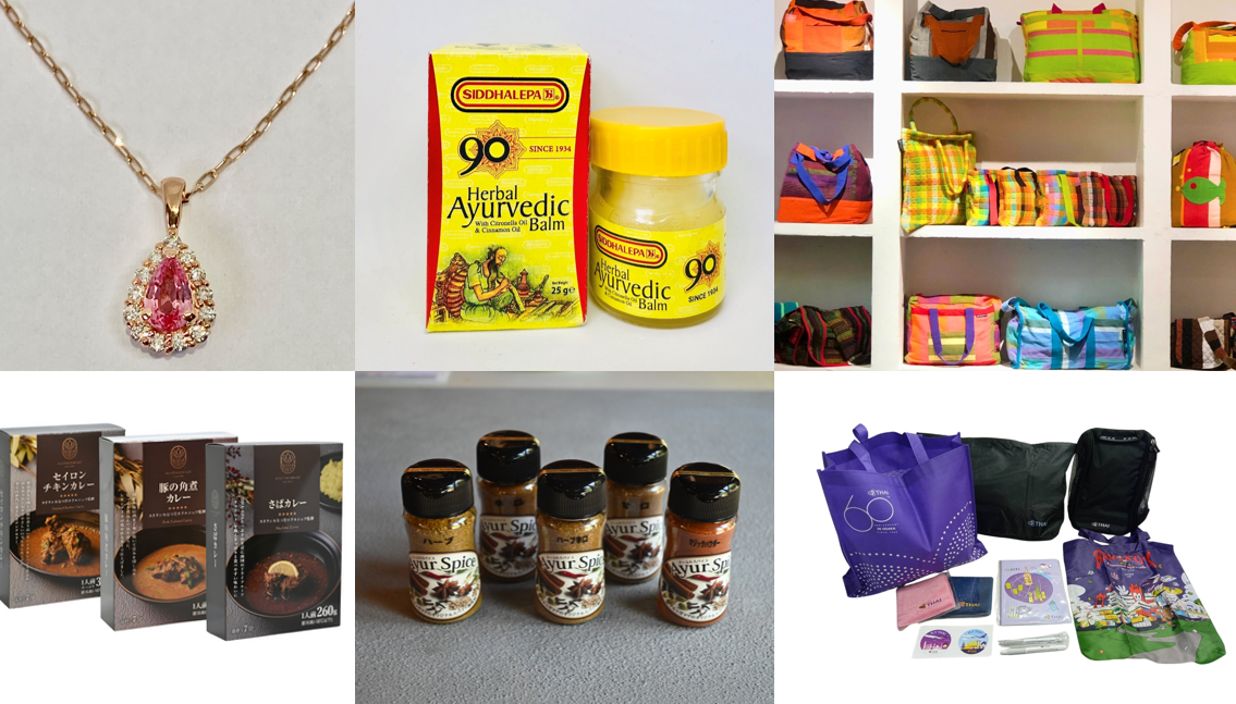 「シッダーレーパバーム」はスリランカ人のバッグには必ず入っていると言われる万能バームです。200年以上の歴史を持つ伝統的な処方で作られ、東洋医学とアーユルヴェーダの知恵に基づいており、スリランカの伝統医療を手軽に体験していただける商品です。「ベアフット」は、仕事の機会を持たない女性たちに未来を届けたいと願った一人の芸術家の思いから始まったブランドで、天然コットンと環境に優しい染料を使用し、職人が一つひとつ丁寧に手で織り上げたバッグなどを提供しています。スリランカの自然からインスピレーションを受けた唯一無二の色彩が魅力の雑貨類を展開します。