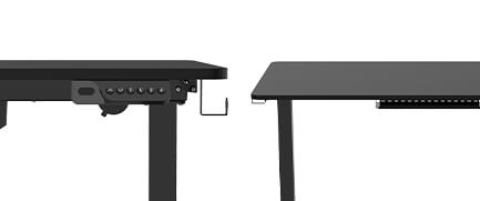 電動昇降機能付きゲーミングデスクには、付属で高さ調節できるコントローラーが付いています。ボタン一つで天板の高さを上下可能であり、自分の好みの高さを保存することができるメモリー機能も備わっています。また側面にはUSB充電コネクタが付いており、スマホなどの充電に役立ちます。