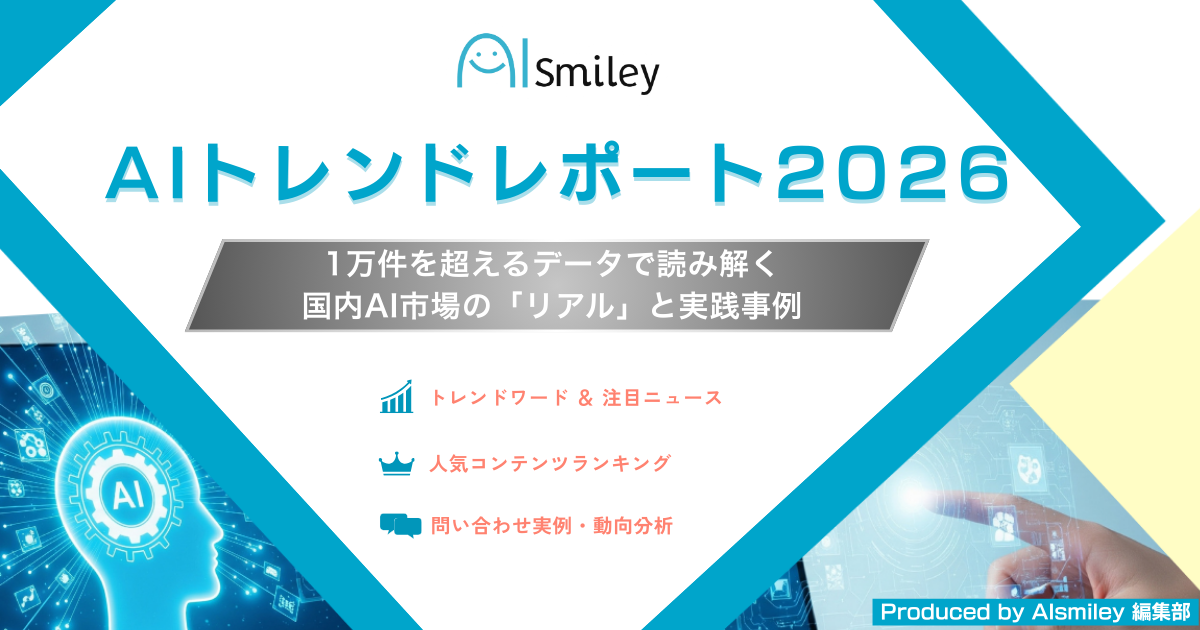 国内最大級のAIポータルメディア「AIsmiley」を運営する株式会社アイスマイリー(東京都渋谷区、代表取締役:板羽 晃司)は、2025年度のAI注目トレンドと企業の関心動向を整理した資料「AIトレンドレポート2026― 1万件を超えるデータで読み解く国内AI市場の「リアル」と実践事例 ―」を2025年12月23日(火)に公開しました。