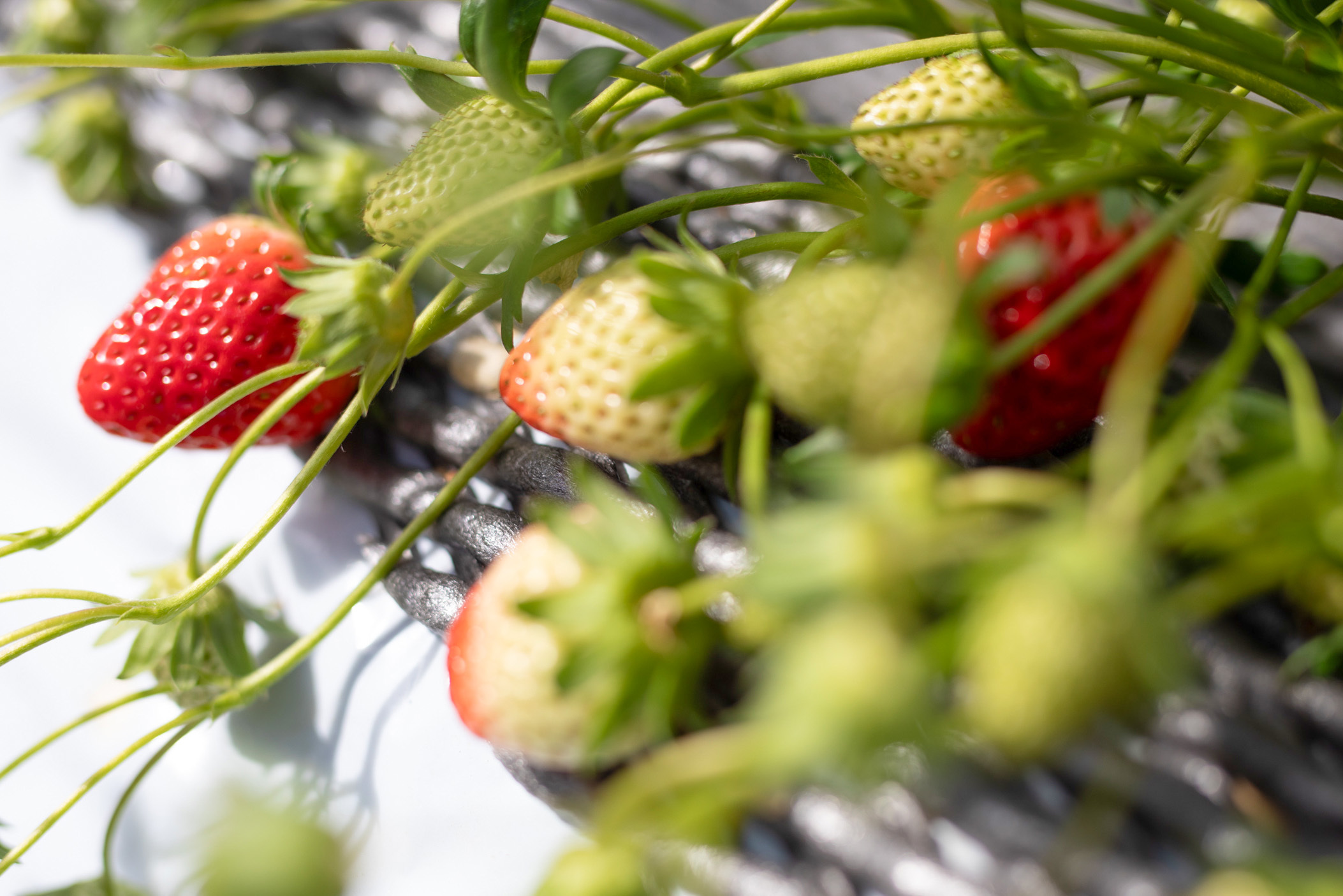高設と土耕、それぞれの栽培特徴を最大限に引き出すと共に、薬品等を極力使わずに肥料や自然のものを惜しみなく使用し、いちご本来の力を最大限に引き出す「超減農薬」での栽培をしています。