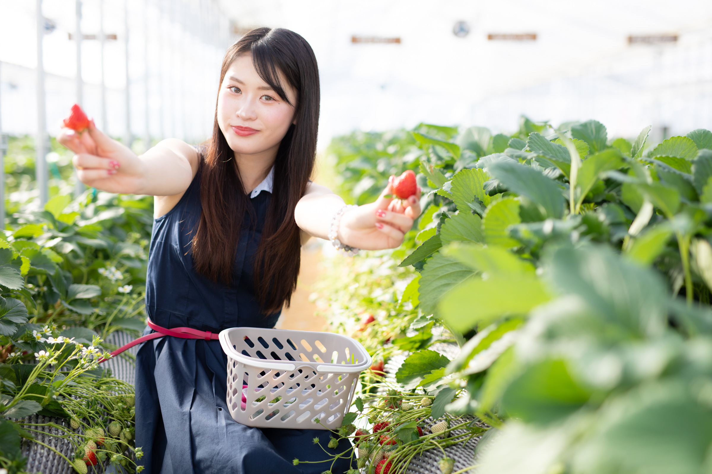 手に取りやすい高さでいちご狩りを楽しめる「高設栽培」、お子様でもいちごが見やすい「土耕栽培」と2つのハウスにて、いちご狩りを楽しめます。