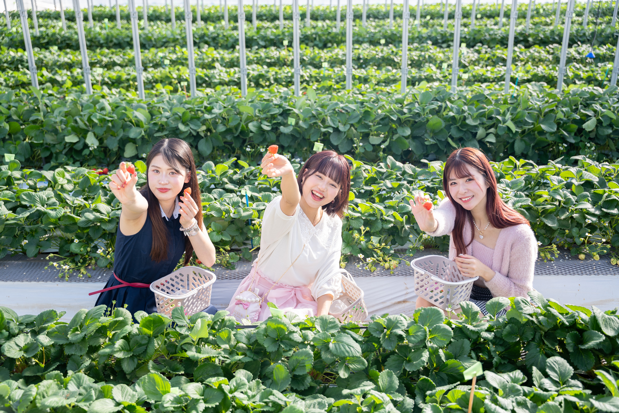 計7,000m2に及ぶハウスの中で、ゆったりといちご狩りをお楽しみいただけます。