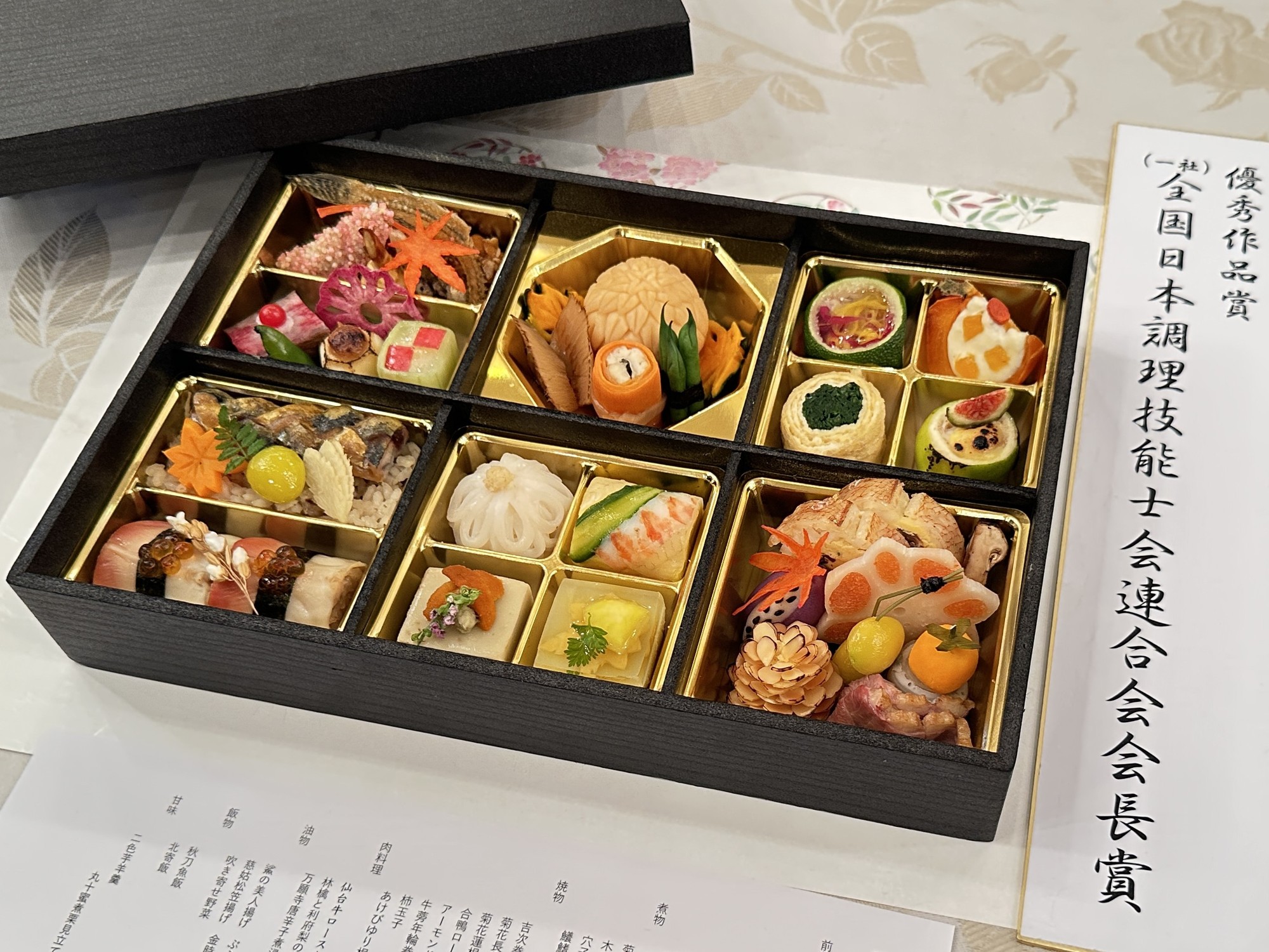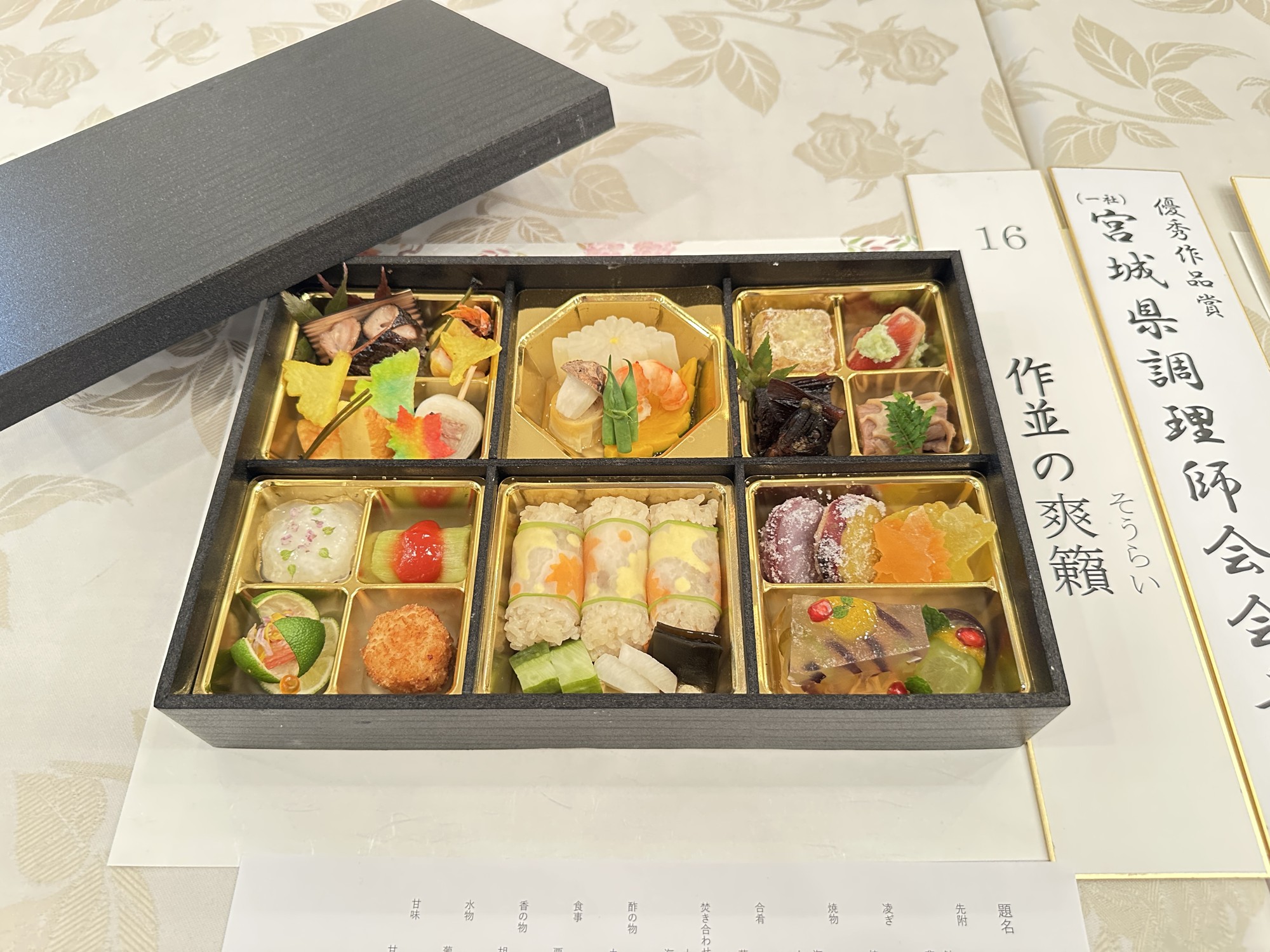 「優秀作品賞・(一社)全国日本調理技能士会連合会会長賞」を温泉山荘だいこんの花の児玉虎雅(こだま こうが)、「優秀作品賞・宮城県技能士会連合会会長賞」を松島一の坊の野徳愛心(のとく あこ)、「優秀作品賞・(一社)宮城県調理師会会長賞」をゆづくしSalon一の坊の長谷部皓也(はせべ こうや)が受賞しました。